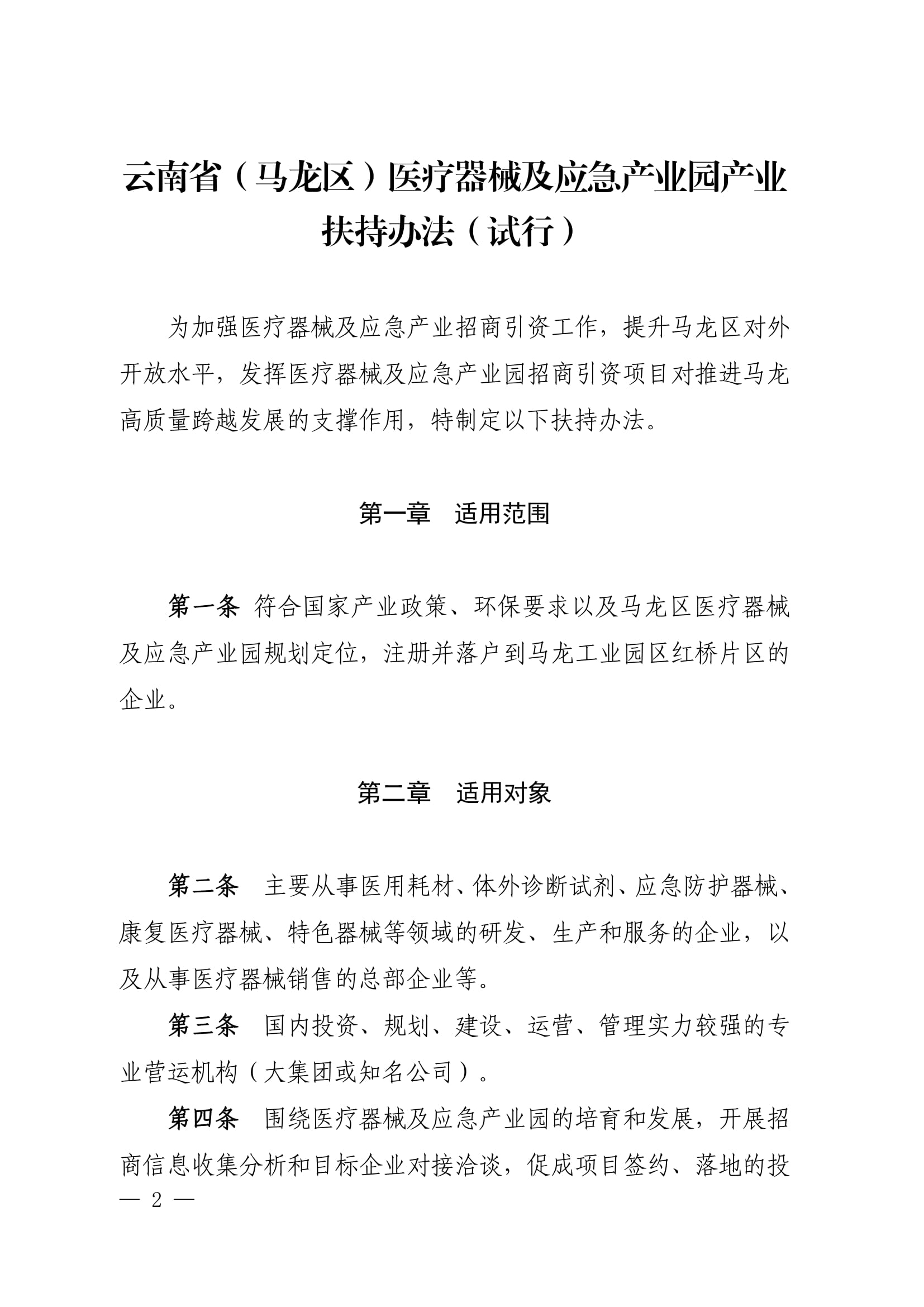 云南。R龍區(qū))醫(yī)療器械及應(yīng)急產(chǎn)業(yè)園產(chǎn)業(yè)扶持辦法(試行)