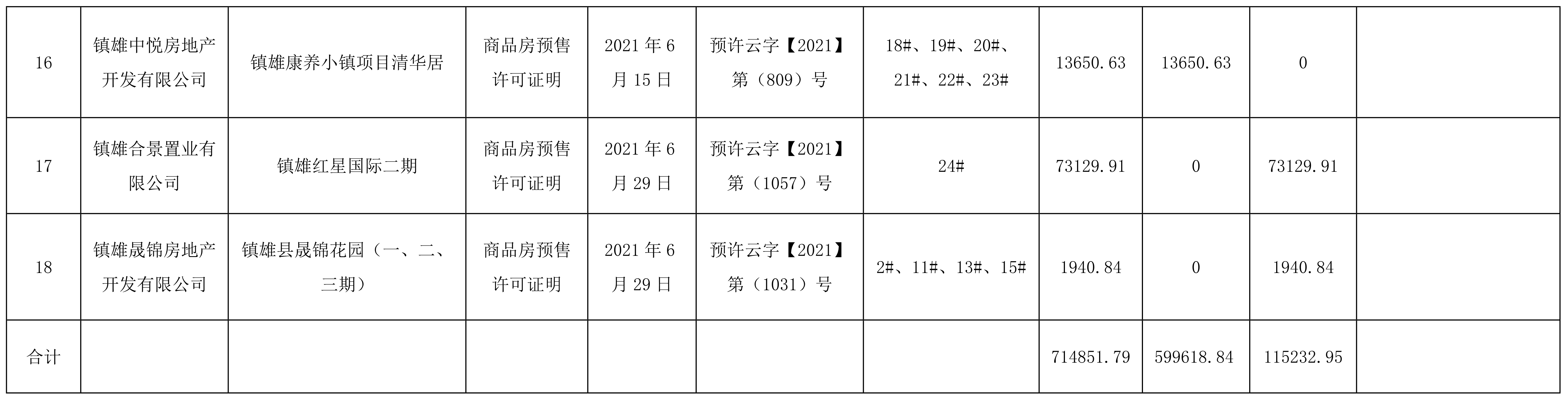 昭通市鎮(zhèn)雄縣住房和城鄉(xiāng)建設(shè)局關(guān)于2021年1月1日至2021年6月31日《商品房預(yù)售許可證明》辦理情況