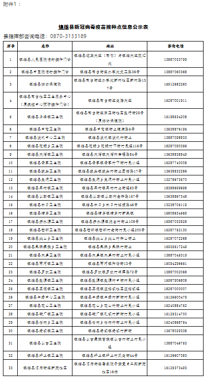 附件:1.鎮(zhèn)雄縣新冠病毒疫苗預(yù)防接種服務(wù)點統(tǒng)計表
