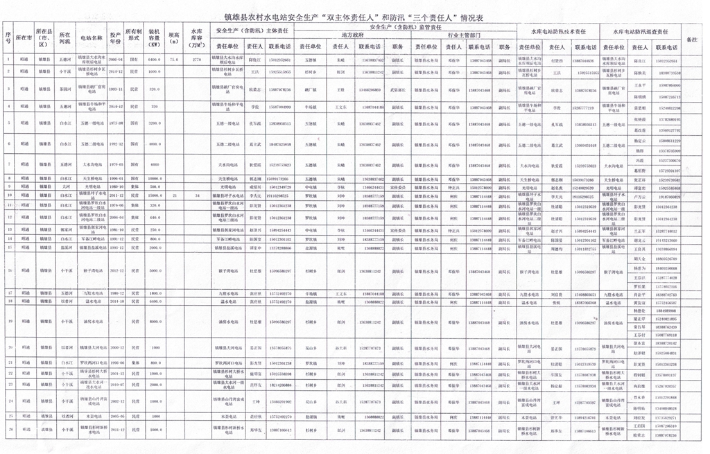 鎮(zhèn)雄縣水電站“雙主體責任人”、防汛“三個責任人”情況公示