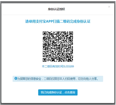 10.系統(tǒng)彈出“身份認(rèn)證授權(quán)”窗口,自動生成該筆貸款申請支付寶身份驗(yàn)證所需二維碼。