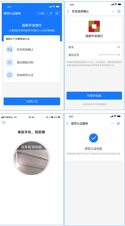 12.掃描完成后,自動跳轉(zhuǎn)國家開發(fā)銀行生源地信用助學(xué)貸款續(xù)貸實(shí)人認(rèn)證專用通道,學(xué)生需按照提示流程進(jìn)行身份認(rèn)證授權(quán)