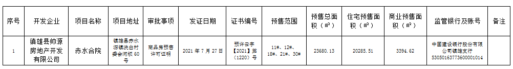 鎮(zhèn)雄縣住房和城鄉(xiāng)建設(shè)局關(guān)于赤水合院項(xiàng)目《商品房預(yù)售許可證明》辦理情況的通告