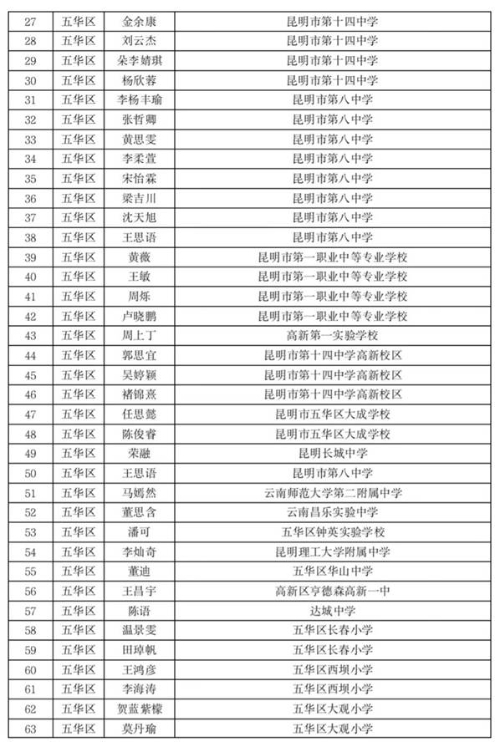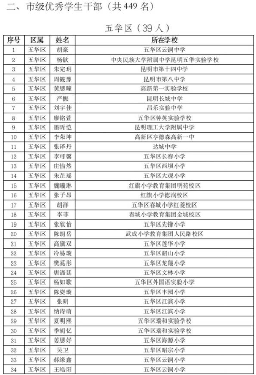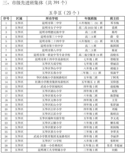 昆明市五華區(qū)關于2020—2021學年市級三好學生優(yōu)秀學生干部先進班集體擬推薦名單的公示