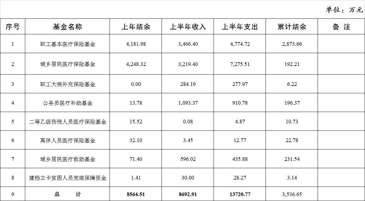 大理市永平縣醫(yī)療保險(xiǎn)服務(wù)中心2021年上半年各項(xiàng)基金收支結(jié)余情況公開(kāi)