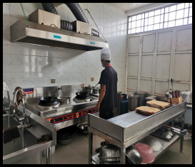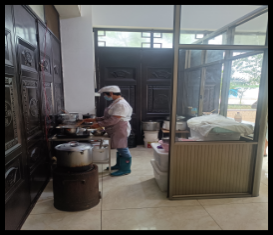 2、后廚干凈衛(wèi)生,從業(yè)人員工作衣帽穿戴整齊,食品加工規(guī)范操作。