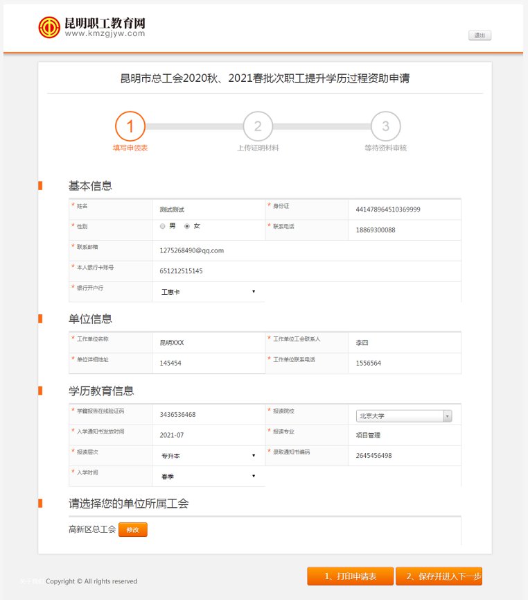 需要填寫的內(nèi)容:1、基本信息,2、單位信息,3、學(xué)歷信息;注意:再次確認(rèn)單位工會所屬的區(qū)總工會,產(chǎn)業(yè)、直屬單位工會信息,如有錯誤及時進(jìn)行修改。