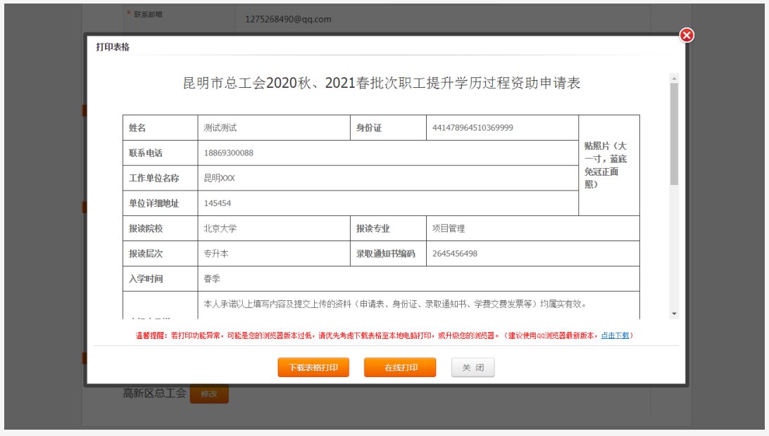 填寫完申請表后,進(jìn)行第二次檢查,檢查無誤進(jìn)行點擊“打印申請表”,打印有兩種方式:1、下載申請表,然后打印,2、在線打印申請表。