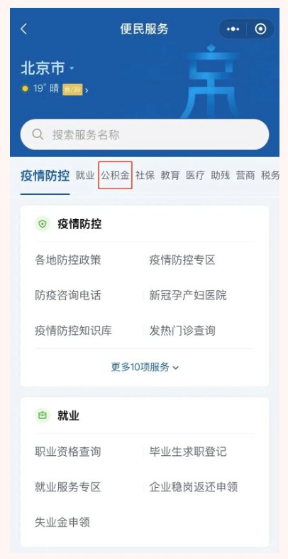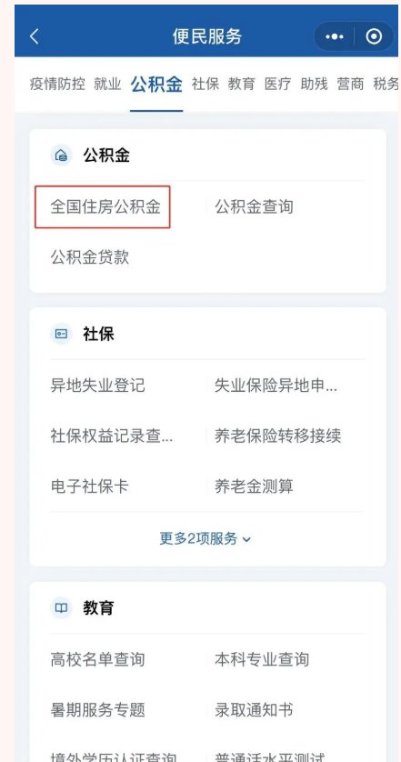 點(diǎn)擊“公積金”→“全國(guó)住房公積金”;